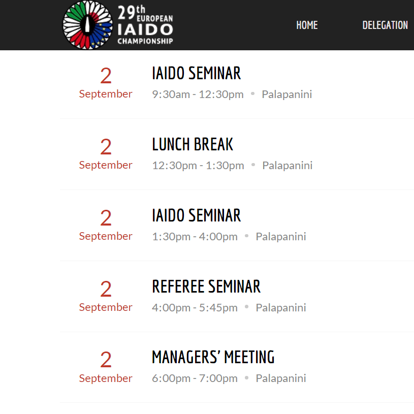 02.09 Today the Iaido seminar is happening in Italy. Below you can see the schedule. A whole day of training and getting the last tips and tricks from the highest sensei to improve yourself. After a big day of training our friends are enjoying a nice meal and and ofcourse a cold refreshment 😉 . All work and no play makes even our Kenhachi members dull boys :).