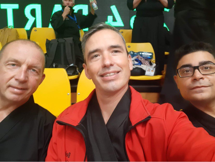 03.09 Finally the day has come for the individual matches. Our three contestants have had there breakfast and are getting ready to leave for the hall. The matches can be watched via the official EIC website, link below, and then go to streams. There are several courts that you can switch through and check out. You can recognize any Belgian participant on the Belgian flag that they have on there zekken ( nametag on the chest). Toi Toi Toi everyone 🤞